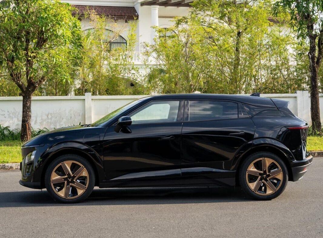 VinFast gọi ngôn ngữ thiết kế trên VF 7 là “vũ trụ phi đối xứng”. Riêng phần mui xe vuốt xuôi về phía sau phong cách coupe, la-zăng hợp kim 20 inch ở cả hai phiên bản. So với VF 6 tổng thể mềm mại, VF 7 có phần nam tính, thể thao hơn.